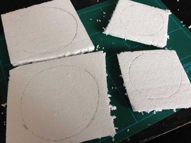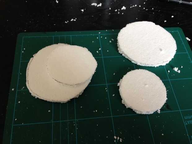 Cortar estos círculos (si esto es más fácil, utilizar las tijeras en lugar de un cuchillo). Lije los bordes sucios y pegar los pequeños círculos a los círculos más grandes. Una vez más dejar a secar.