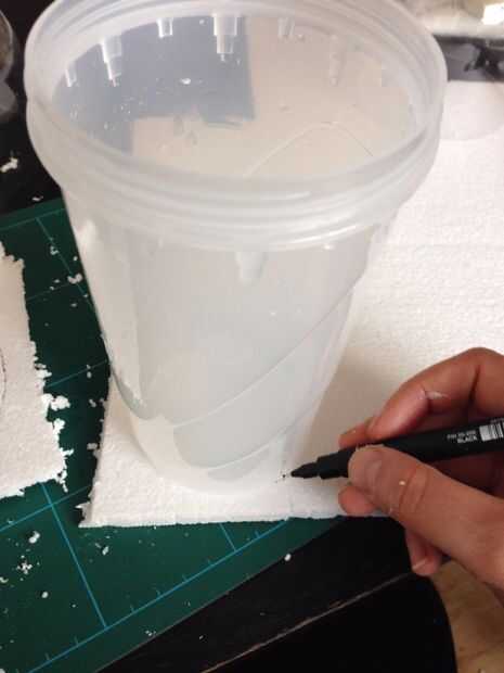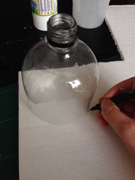 Usando la parte inferior de la botella a cortar, dibujar alrededor de ella en algunos de la Junta dos veces. Usar algo que tiene forma de círculo más pequeño y hacer lo mismo.