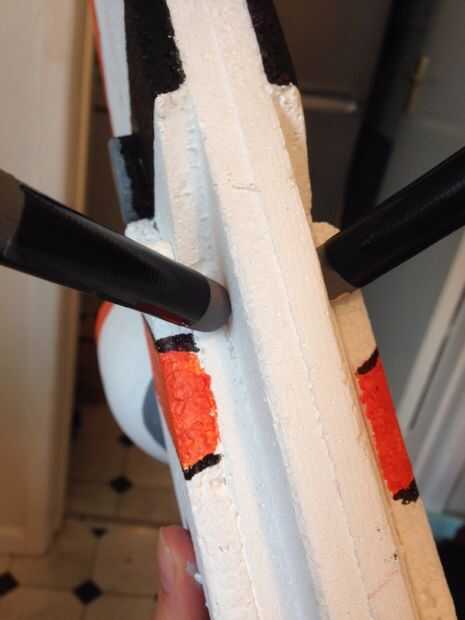 Cuando estén secas las balas peguen en el arma. Trate de espacio de manera uniforme. Como dejaste bastante de los pinchos de madera que sobresale de las balas debe permanecer en el lugar.