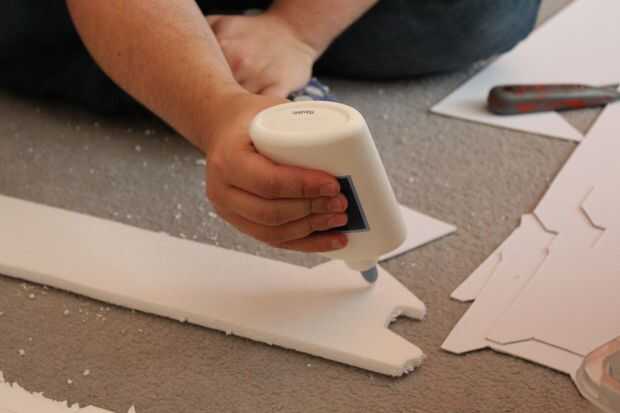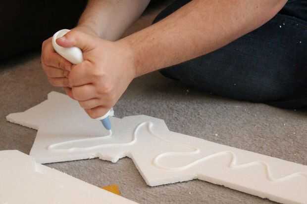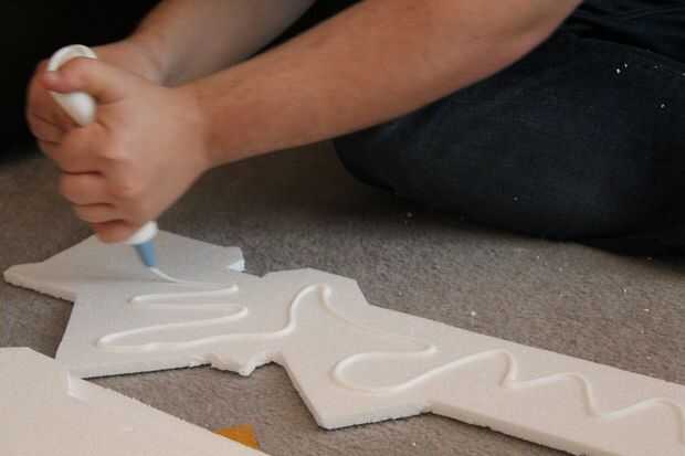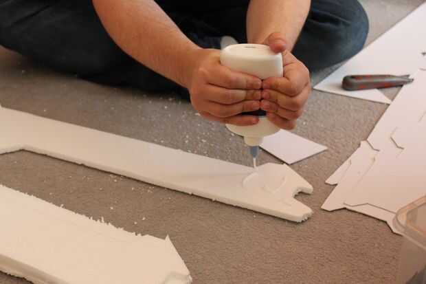 Tendrás que tener cuidado que pegamento le uso, dado que es poliestireno, algunos adhesivos se come lejos en él. Utilice un trozo de espuma para probar. Hemos utilizado PVA que fino trabajado (es también barato, fácil de obtener y seguro de usar) y sugeriría uso.