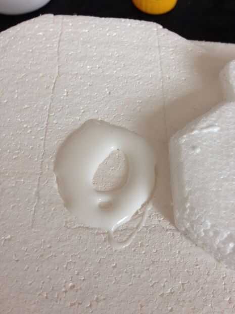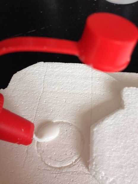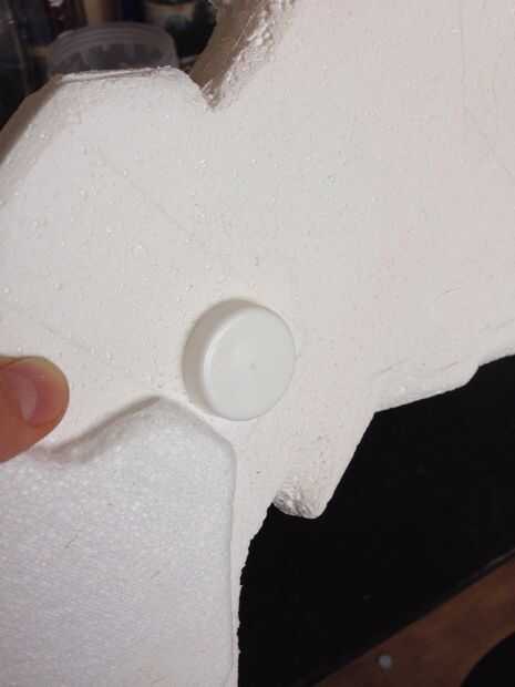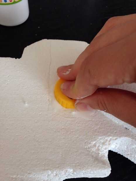 Usando las tapas de botella empuje la espuma y hacer un guión donde quiere sentarse. Hacer que las tapas van en a medio camino. Retire la tapa y luego verter algunos pva sobre el guión y vuelva a colocar la tapa en lugar. Debe permanecer en el lugar bastante cómodamente/bien pero usted puede cinta adhesiva con cinta adhesiva mientras esperas que se seque para más tranquilidad.