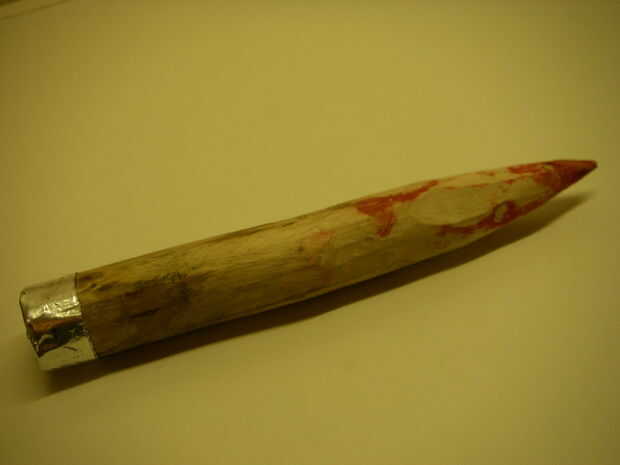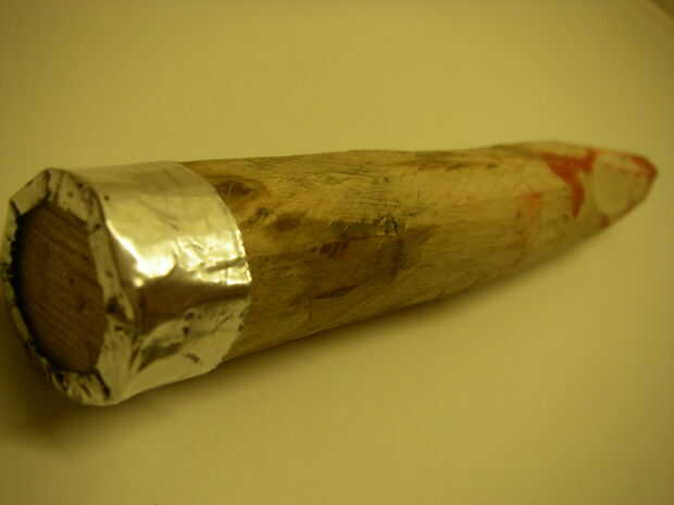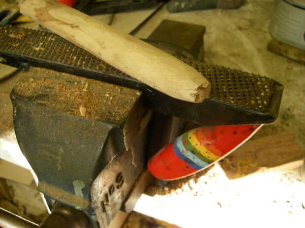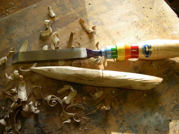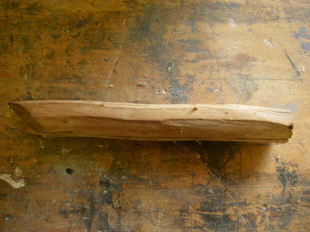 he quitado la corteza y afilar el palo en una punta con un cincel (también usé un surform pero no es necesario).