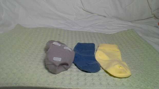 Escoger calcetines que ajusten el tamaño de las manos de los niños, bebé/toddle tamaño 2-4. También miré para los calcetines que eran una variedad de tonos de piel.