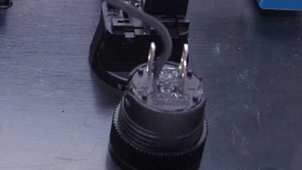 3) Coloque la parte posterior del pulsador iluminado rojo redondo botón (ver imagen). Hay cuatro soldadura