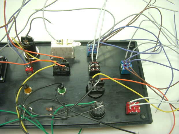 3) en la parte posterior del interruptor blanco complemento émbolo hay tres lengüetas de la soldadura. Ver la imagen. Soldar un hilo blanco a uno con la etiqueta 'Abrir'.