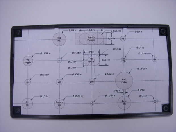 4) la plantilla sólo debe encajar dentro de la parte posterior de la tapa de la caja de proyecto. Si está demasiado floja, se moverá y que no Haz colocado precisamente los agujeros. Si es demasiado grande no pone plano y también tendrás problemas. Cortar el papel según sea necesario.
