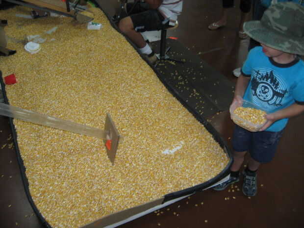 A veces la actividad consiguió bastante frenética como los niños para asegurarse de que el maíz fue subiendo tan rápido como venía.