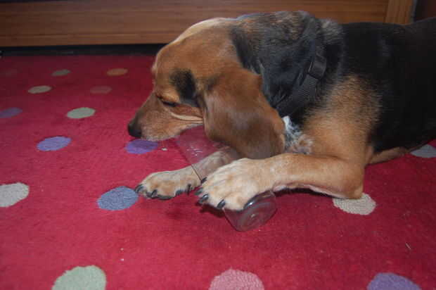 Como estaba tomando fotos para uno de estos pasos, mi perro saltó y escurr con la estrella... Como un regalo especial, voy a dejar que lo juega con una botella de plástico, pero mantener una estrecha vigilancia sobre él y la quitan cuando empieza a rasgar en pedazos "estanco".
