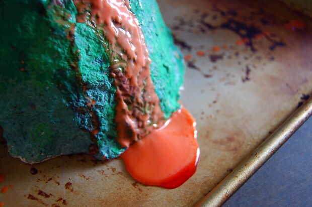 Nota: puede omitir la configuración de todo volcán, vierta el bicarbonato de sodio y vinagre en una botella vacía y ser hecho con esto en unos pocos minutos, es más divertido de todos modos si lo pones una pequeña lo botella con un movimiento de tornillo en el casquillo (como un envase de leche) no y ver pop (fuera--y omitir el agua y detergente del colorante del alimento) o puede saltarse la lección de química y divertirse con el material de modelado. Si pulsas esto en un molde usted conseguirá un acabado liso y duro. Formado sobre una armadura, el resultado será dura y resistente también, pero en bruto. Si usted quiere mantener su trabajo durante más de unos meses yo recomendaría agregar unas gotas de aceite de wintergreen, aceite de menta o alumbre en polvo (a veces utilizado como un remedio de AFTA) como conservante.