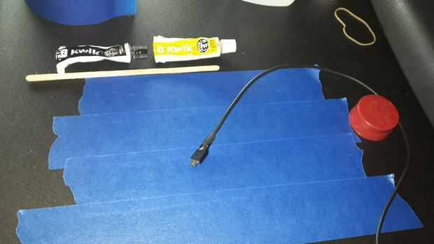 No quiero estropear esto, así que tiene poco de cinta azul y lo dejó, agradable y suave, con un pequeño solapamiento. Como se puede ver, yo estoy reparando el extremo micro-USB del cargador de mi teléfono. He perdido el poco que falta, pero eso no importa.
