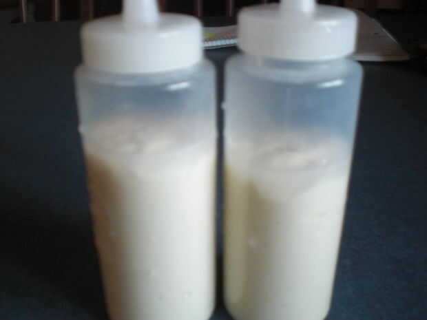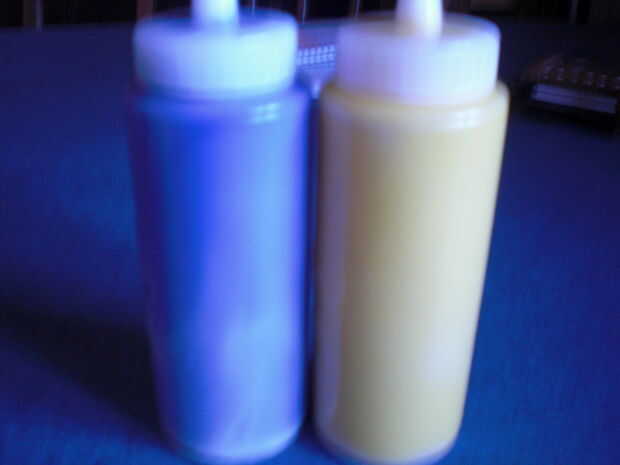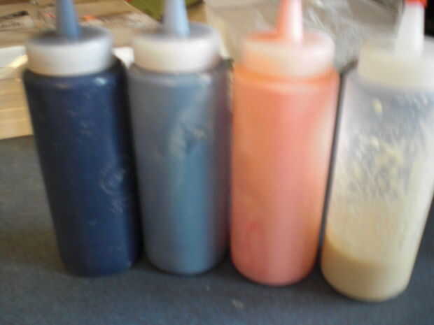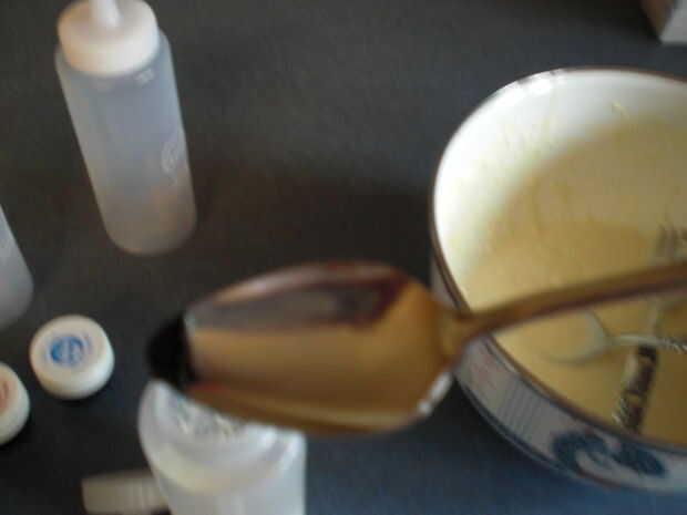 Lo primero que vas a querer hacer es dividir la mezcla en las botellas. Si no eres bueno en verter precisamente, puede que desee utilizar un embudo para limitar el desastre.  La cantidad que Vierta en cada uno debe reflejar lo que usted está planeando hacer si usted está planeando sobre el uso de un color más que los demás, asegúrese de que la botella de ese color tiene más masa. Dejar de lado algún bateador que puede ser utilizado para rellenar su arte atemoriza más adelante.