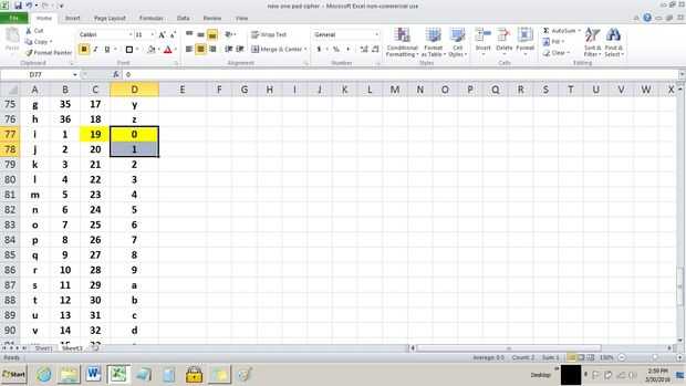 Ahora, introduzca 0-9 y a-z en la Columna D para que los datos corresponden a las columnas A y B. En otras palabras, para que 18 = z y 29 = a, etc..