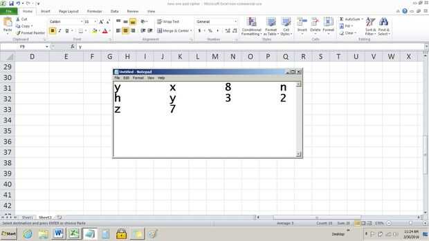 Una nota final... usted puede fácilmente copiar y pegar mensajes en y fuera de la hoja de cálculo, pero se verá cuando copie el texto cifrado y péguelo en Bloc de notas o Word o lo que sea, hay espacios entre caracteres. Esto es debido a de Excel formato el texto en celdas individuales y se llama delimitado por comas. Eliminar simplemente los espacios colocando el cursor detrás de los personajes y oprimir la tecla Delete. Por el contrario, antes de pegar el mensaje cifrado en la hoja de cálculo, ir detrás de cada personaje y golpear la ficha que colocará los caracteres en las celdas al pegar en la hoja de cálculo.