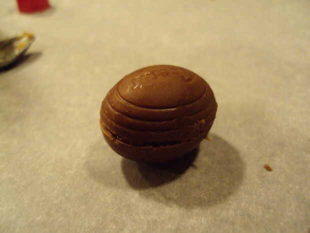 Tomar el cuchillo ahora caliente y se usa para fundir el chocolate alrededor de la costura con el fin de crear un sello y mantener la salsa de Tabasco.