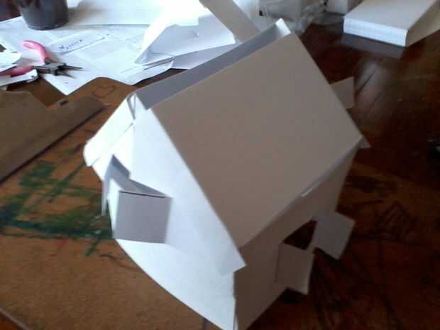Asiento de estas tarjetas en la parte superior sus armaduras con la aleta del 1/4" dentro de marcos de la pared y las aletas de 1/2" en el exterior de las cerchas. Una tarjeta de índice final del doblez en ángulo recto lateral y colocar en la parte superior de su azotea. Mina hice sobresalir un poco sobre la puerta de entrada, pero usted puede recortar tuyo si quieres.