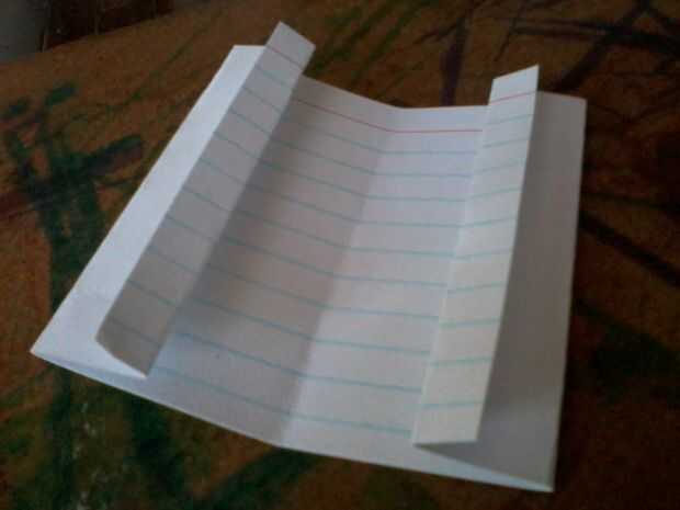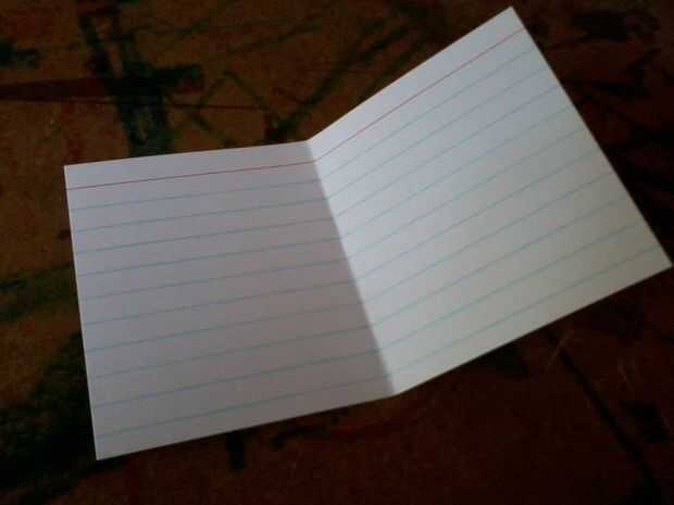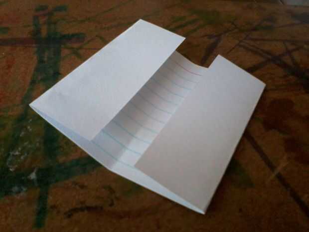 Doblar la tarjeta por la mitad, con el forrado tamaño mirando hacia el interior. Se despliegan para que usted puede ver la línea de la doblez. Doble cada lado hacia el centro, parando 3/4 del camino al centro. Usted tiene dos aletas, doblar 1/3 de cada aleta detrás. Pliegue en cada esquina y meter debajo de las aletas.