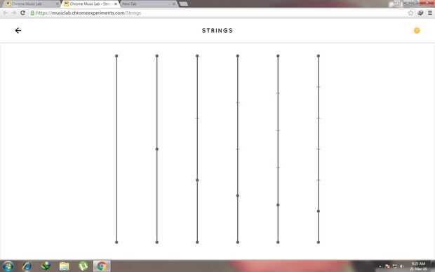Este experimento permite explorar la natural relación matemática entre la longitud de la cadena y su tono. Por ejemplo, la segunda cadena es la mitad de la longitud de la primera, y juega la misma nota una octava más alta.