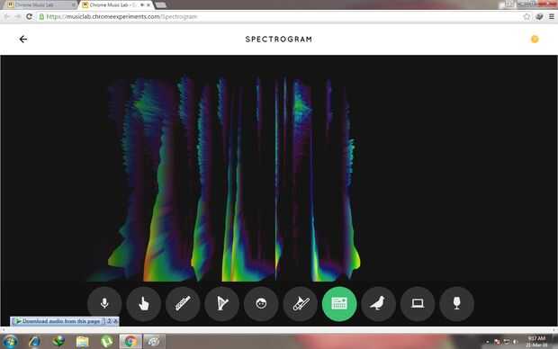 Un espectrograma es una imagen del sonido. Un espectrograma muestra las frecuencias que componen el sonido, de bajo a alto, y cómo cambian con el tiempo, de izquierda a derecha. Con este experimento puede comparar espectrogramas de sonidos diferentes, o usar el micrófono para ver lo que tus propios sonidos.