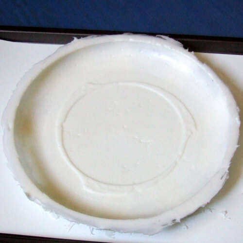 Después de la Oogoo ha puesto en marcha por una hora o dos, mezclar un pequeño lote de Oogoo fresca y poner suficiente en la parte inferior del molde para apoyar el fondo y los lados. Voltee lateral Frisbee encima y ponerlo en un pedazo de plástico de polietileno sobre una superficie plana. Que este conjunto para arriba durante la noche.
