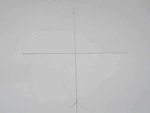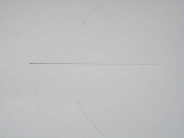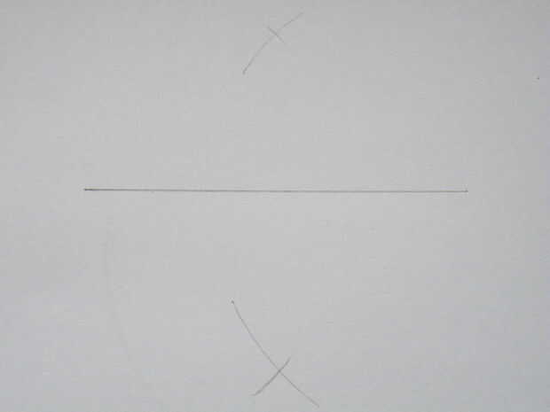Vuelva a colocar el compás en el otro extremo de la línea y dibuja dos arcos más, atravesando las dos primeras que dibujó.