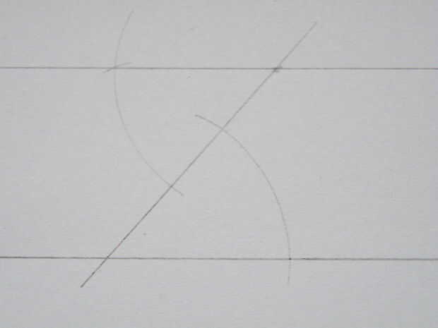 Comience por dibujar una línea diagonal a través del punto que cruza la línea existente.