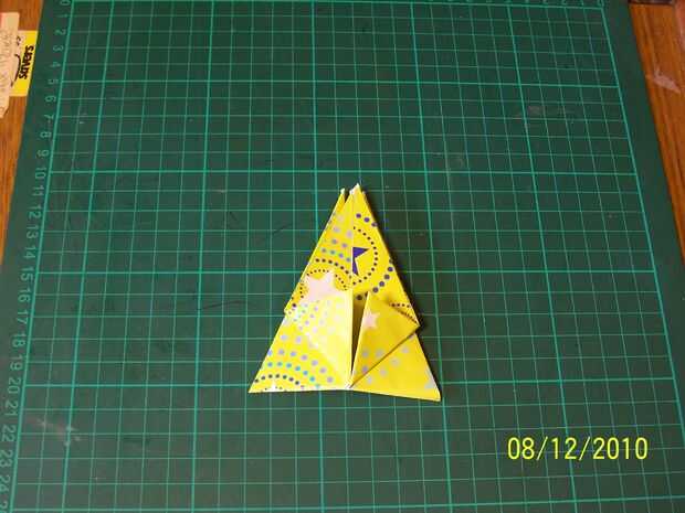 Como se muestra doble hacia arriba las esquinas dos inferiores a cumplir en la línea de centro. Arruga bien.