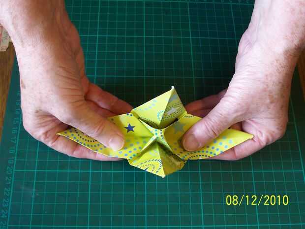 Este es otro punto de vista de mis dedos en su lugar como en el paso anterior. Mantener en el lugar y suavemente separe y la Plaza del centro de la estrella comenzará a aparecer.