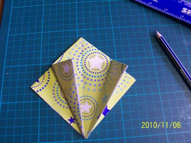 Tomar el punto izquierdo y doble a la línea central. Pliegue bien (dejar en su lugar).