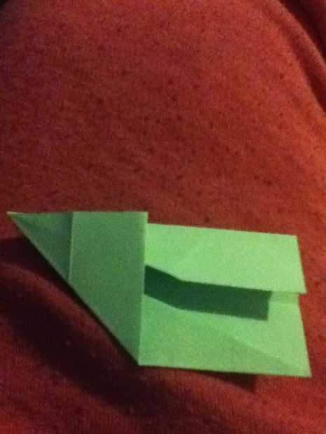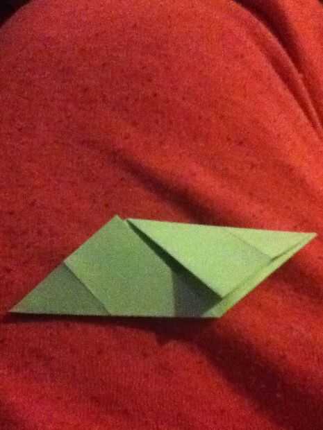 como siempre mantenga los rectángulos horizontales :) manteniendo el cuadrado de papel en forma envolvente, tomar la esquina inferior izquierda y llevarlo hasta el centro del papel. a continuación girar el papel hasta que la esquina doblada en el lado opuesto nuevamente toma la esquina izquierda y doblar hasta la mitad. Cuando se hace doblando esta parte se verá como un diamante :)