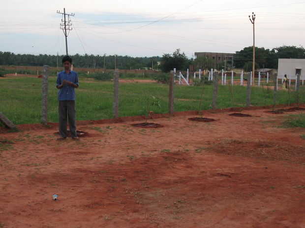 En el tiempo, visitamos un vivero cercano y compré plantones de frutales. Compramos mango, naranja, limón, dulce limón, níspero, Jackfruit, grosella espinosa India, Jamun, Granada y guayaba plantones.