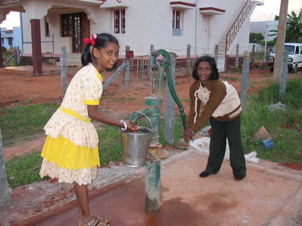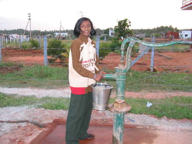Los arbolitos plantados necesitan ser regadas regularmente. Inicialmente no teníamos electricidad. Había perforado un agujero bien e instala una bomba de mano. Cada noche de día, utilizamos el jardín y todos plantones de agua por bombeo manual de agua. A veces mi sobrina también nos ayudó en el riego de los plantones.