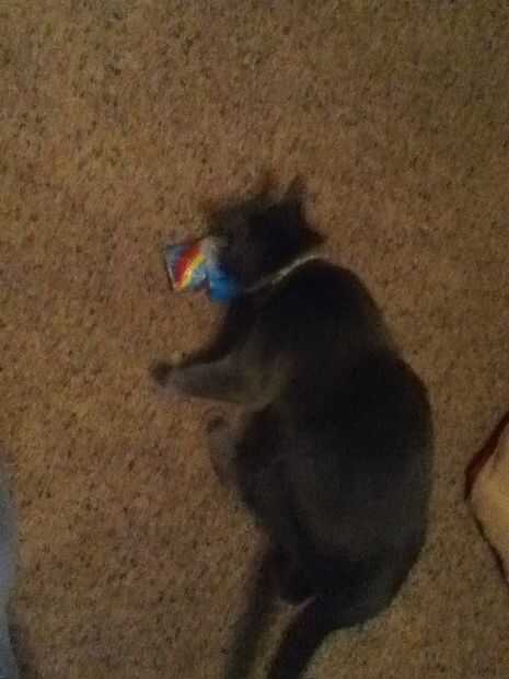 esto es un juguete de gato que se monta en tu nevera con un imán potente. Es fácil de construir y debe mantener su felino entretenido... si están en el estado de ánimo. Como los gatos son más inconstantes que el tiempo no puedo hacer ninguna promesa.