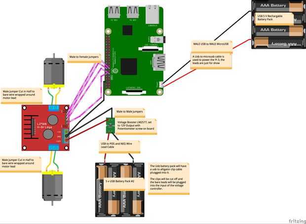 Tuvimos que usar las 4 pilas AA en el diagrama porque no hemos podido encontrar una fuente de alimentación USB en el programa que utilizamos. Técnicamente podrían utilizar las pilas AA, pero las pilas iba a morir rápidamente y no son recargables.