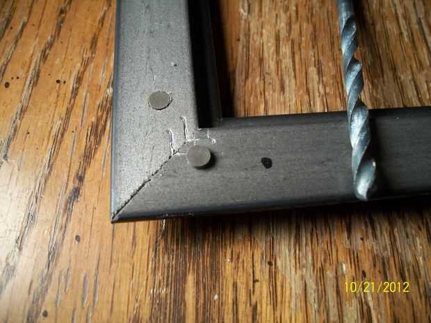 Perforé algunas someras 3 / 16 orificios en el marco para que coincida con donde van los tornillos que se encuentra.