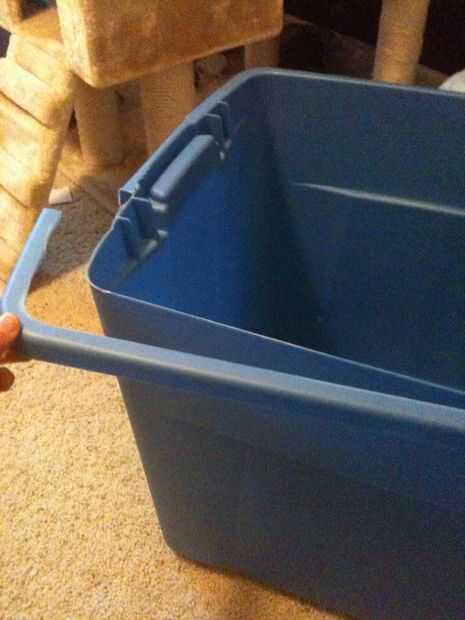 recipientes de basura son un problema. Especialmente cuando tienes un gato grande que no cabe en una caja pequeña y un perro que considera caca de gato un manjar. Ha sido una lucha para encontrar una caja de litera comercial el gato puede entrar y