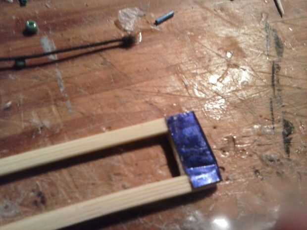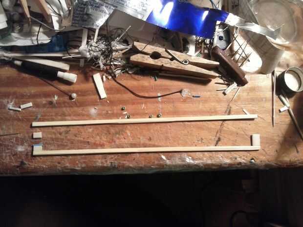 Luego vienen los separadores de uniones en ambos extremos de las vigas. Uno es simplemente un rectángulo de madera, el otro está compuesto de 2 rectángulos más pequeños madera y un tubo que voy a explicar cómo conseguir ahora. "Las Naciones Unidas-se dobla" un clip y uso un cuchillo afilado hacer un corte circular (a través del plástico aislante) alrededor de cualquier punto sobre ella. Tire de ambos extremos del aislamiento hasta que una parte de ella sale el clip. Cortado este tubo a la medida y utilizarlo para este paso. (el tubo que cortar para este helicóptero se redujo a 7 mm)