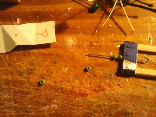 2 bolas en el extremo superior del eje del hilo de rosca y no asegurarse cola sobre ellos porque ellos deben ser capaces de girar libremente. Grano de lugar una tercera sobre el eje, pero esta vez lo pegue en su lugar. Deslice el eje (con la pieza de madera adjunta) sobre el eje y la cola, tanto para el eje y el talón pegado. Deslice un cuarto cordón en el eje y pegamento para el eje y el eje para un extra poco de fuerza.