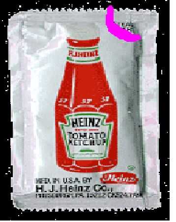Con la salsa de tomate, rip del rincón que dice rasgar aquí, o la línea morada. Asegúrese de que usted no rasgar a cerca de la parte superior o bien la paja no cabrá en el paquete.