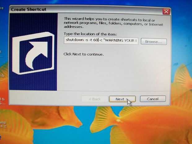 "Escribe tu mensaje aquí" al igual que lo que dice. Puse: "ADVERTENCIA el equipo ha encontrado un ERROR FATAL. CERRAMIENTO HACIA ABAJO EN UN MINUTO..."