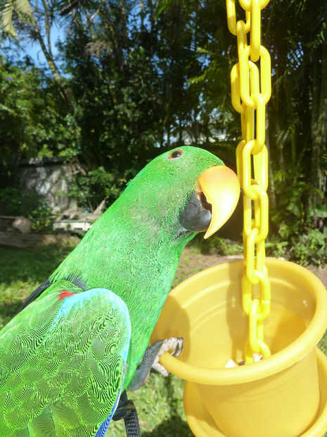 Loros entienden la importancia de mantener la salud y fitness por divertirse encontrar y comer su comida! No nacen loros en jaulas en el mismo plato de comida en y día hacia fuera. Naturalmente de forraje y tienen una increíble capacidad para resolver problemas complejos que escapan a algunos seres humanos. Por ejemplo, cómo colgar boca abajo con su cabeza en una maceta mientras se agrieta una tuerca!