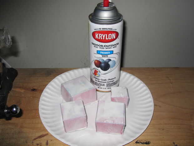Los bloques de hielo están hechos de cartulina de la caja de cereal en pequeños cubos de reciclaje. Son abiertos por un lado, así que pueden apilarse dentro del iglú. Cebe el cartón, pintar con acrílico blanco del lustre y luego añadir algún brillo de nieve.