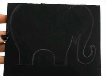 Toma un papel negro y dibujar un bosquejo áspero y contorno del elefante, con un lápiz color blanco para que puedan ver esquema del elefante.