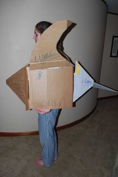 El traje se creará para usarlo como un disfraz de Halloween o para el uso en un juego. El traje será usado por un niño de escuela media. El traje debe permanecer juntos y ser creado utilizando un diseño de paquete plano y sin adhesivos. También se pondrá el traje de 100% de materiales reciclados como el cartón. El traje debe almacenarse plano y ahorrar espacio en la página de inicio del usuario.