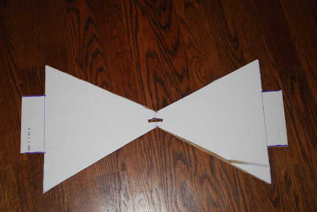 8. Mida una rendija horizontal de 2" con la regla (T3) en el centro de la forma de corbatín y dibujar con un lápiz. (T4)