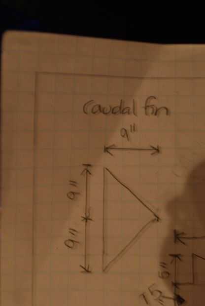 > El vértice de la aleta caudal (P4) de la ranura en la ranura (S12) en la cola. (P3)