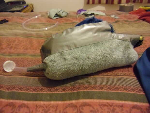 Caliente pistola de pegamento + pegamento o cinta adhesiva para conductos (yo usé cinta adhesiva)