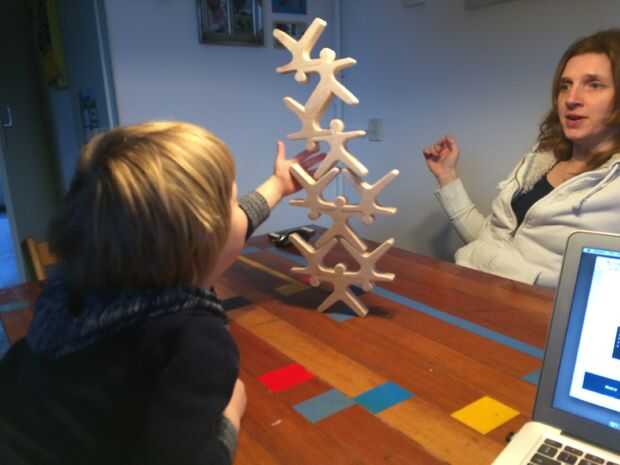 Puede utilizar estas personas divertidas para apilar en muchas variaciones, pero también puede línea de ellos para utilizarlos como fichas de dominó, al menos eso es lo que le gusta mi pequeño ayudante hacer con ellos.