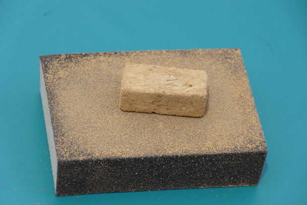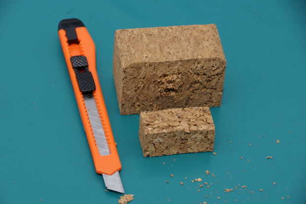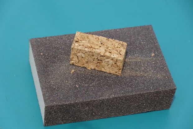 Luego usé el papel de lija para eliminar asperezas y dar mi bloque de corcho un aspecto liso, ya que voy a dejar como está, sin pintándolo o proteger con esmalte o tal.