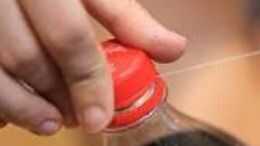Sacar la tapa y coloque botella con cola en aparte... Luego agarra su cadena y mentos Poner un mento en la tapa y poner un poco de picadura en forma cruzada transversalmente para garantizar