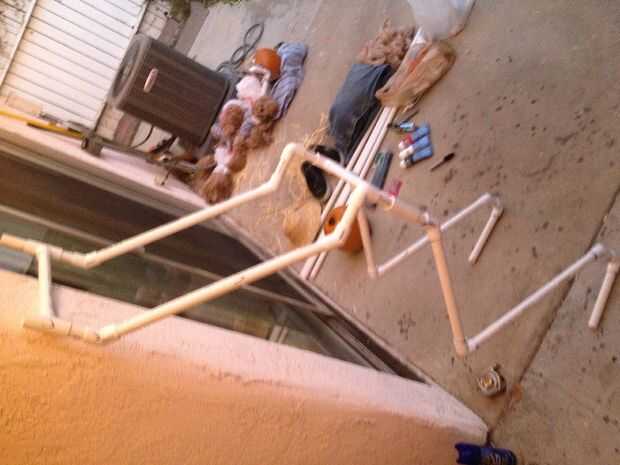 mi madre y yo no quería comprar uno de los espantapájaros cutres de Michael o Jo-Ann, por lo que decidimos diseñar y construir nuestro propio.  Utilizar PVC para el marco, así que es ligero y resistente al agua y lo rellenas de materiales de embalaje